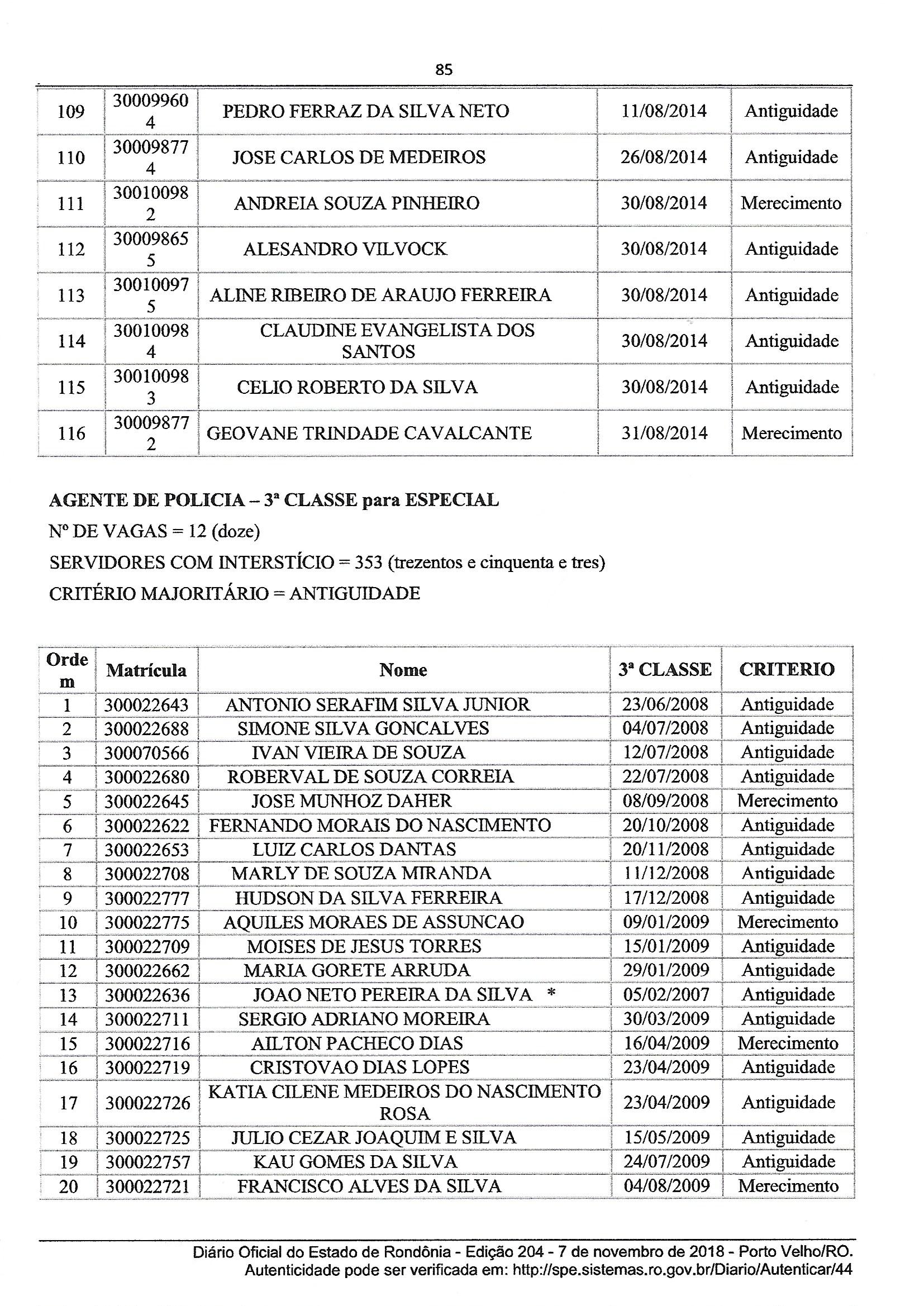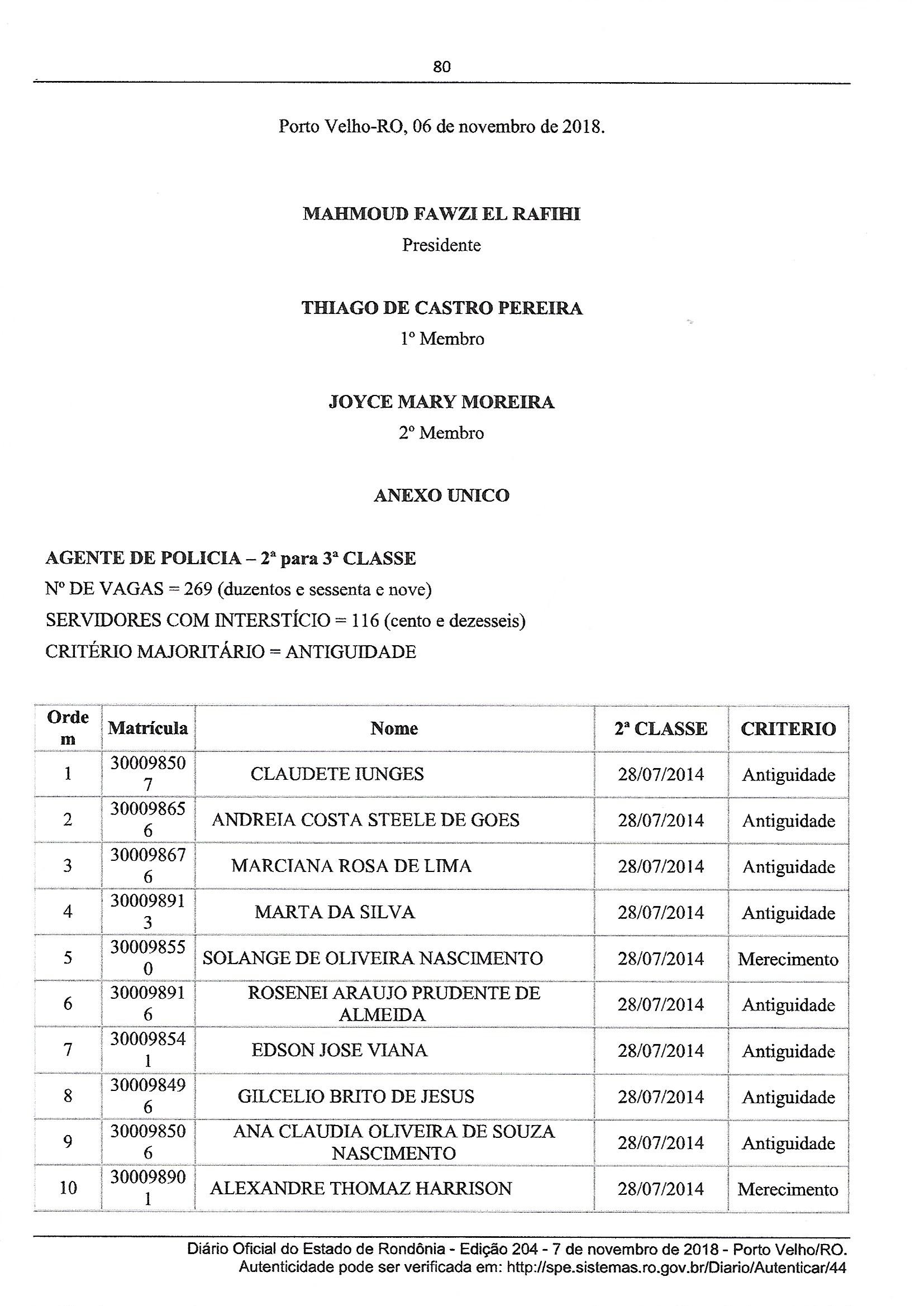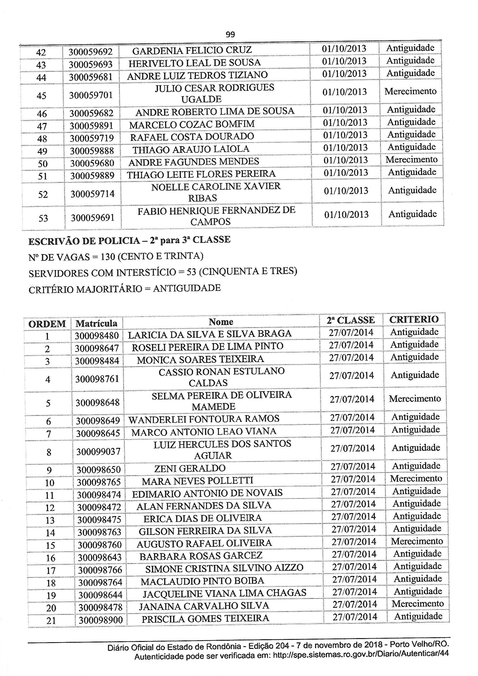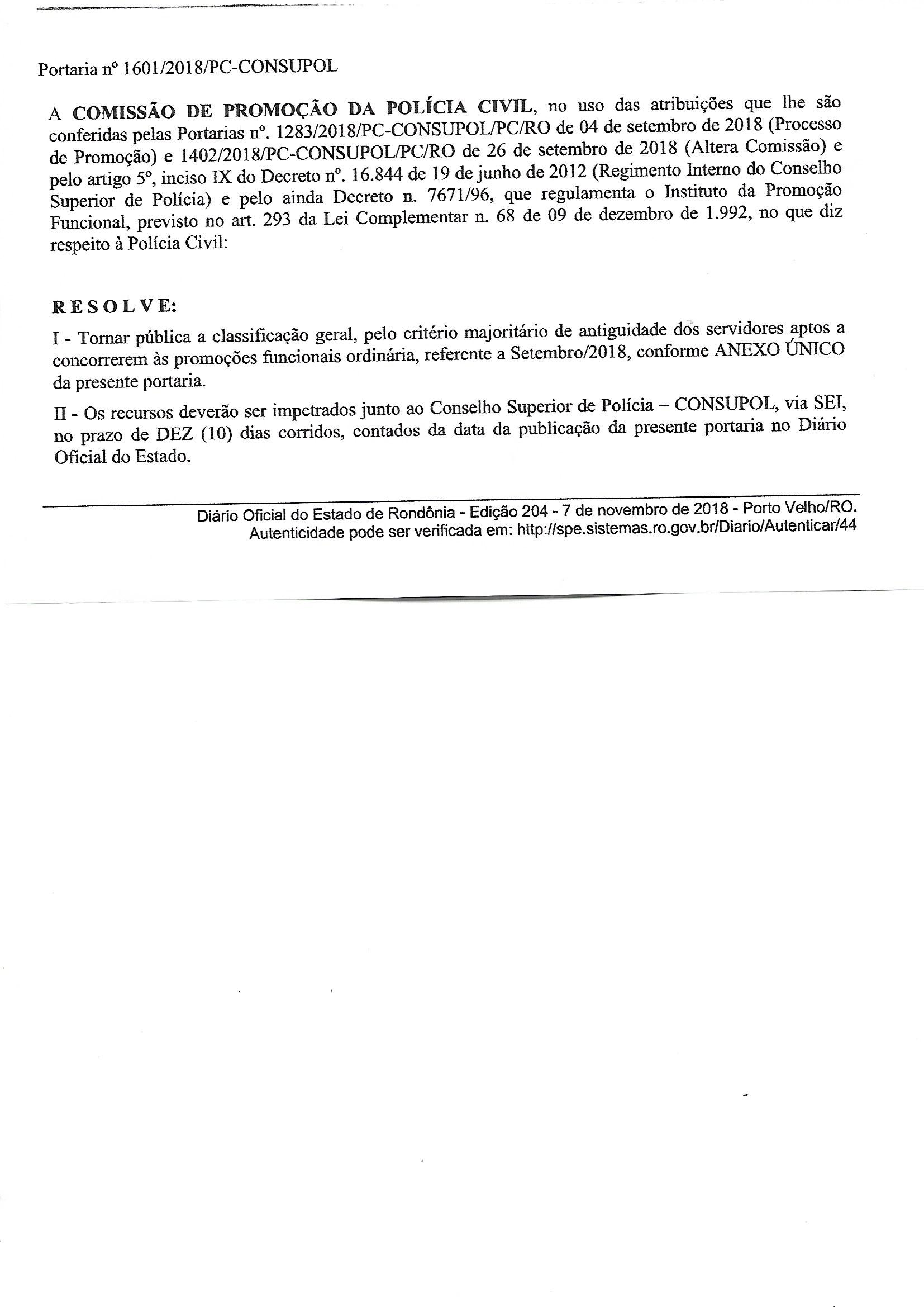 A Diretoria do SINSEPOL informa para todos os seus filiados que o Conselho Superior de Polícia Civil - CONSUPOL torna pública a classificação geral, pelo critério majoritário de antiguidade dos servidores aptos a concorrem às promoções funcionais ordinárias, referente a Setembro de 2018, conforme Portaria 1601/ 2018/PC-CONSUPOL, publicada na edição nº 204, de 7 de novembro de 2018, no Diário Oficial do Estado de Rondônia, páginas 79 à 102.