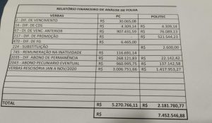 Informamos ainda, o retorno em novembro do pagamento de verbas rescisórias, abonos pecuniário, remuneração para inatividade, dentre outros.