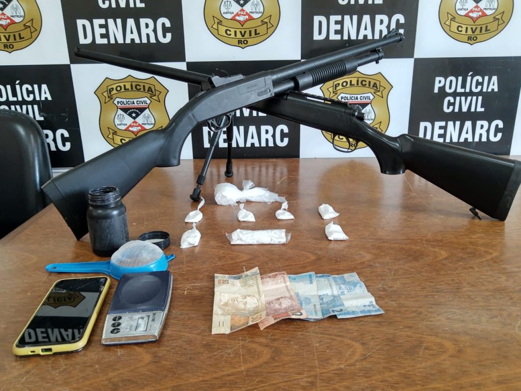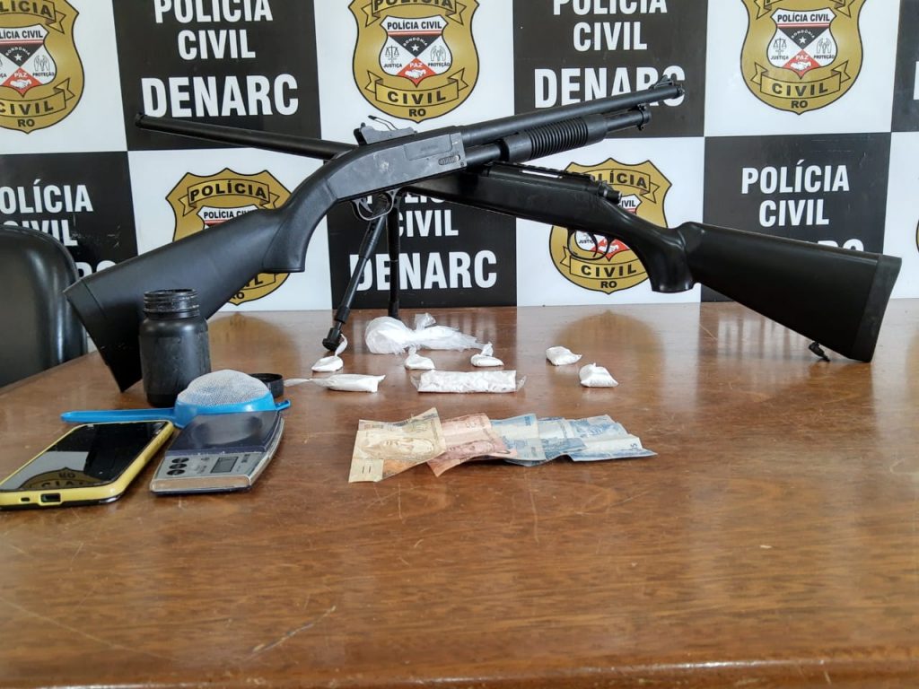 Policiais civis lotados no Departamento de Narcóticos (Denarc) fecharam mais um ponto de venda de drogas em Porto Velho (RO). Nesta quarta-feira (25), os policiais civis prenderam Felipe N. A, 33, por tráfico de entorpecentes em uma residência na Rua Bartolomeu Pereira, bairro Eletronorte, na zona Sul. Os policiais disseram que começaram a investigação após uma série de denúncias anônimas informando que o homem que não possui uma perna estava traficando droga em uma casa que fica ao lado de uma igreja. Após a constatação do tráfico de drogas, os policiais foram ao local e abordaram o acusado que escondia droga inclusive na prótese de perna que utilizava. Porções de cocaína, dinheiro e balança de precisão foram apreendidos na residência, além de duas réplicas de armas de grosso calibre. Segundo os policiais, chegaram denúncias também que as armas de brinquedo estariam sendo usadas em assaltos na cidade. Felipe foi levado preso para a sede do Departamento de Narcóticos e ficou à disposição da Justiça.VEJA IMAGENS