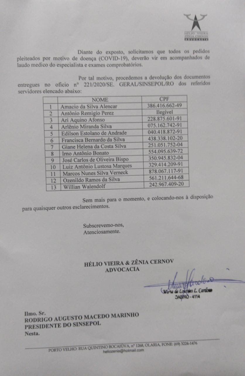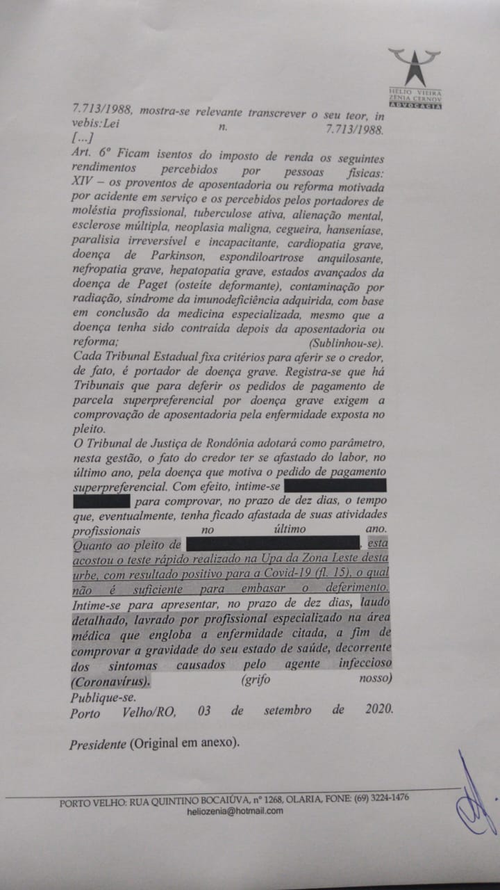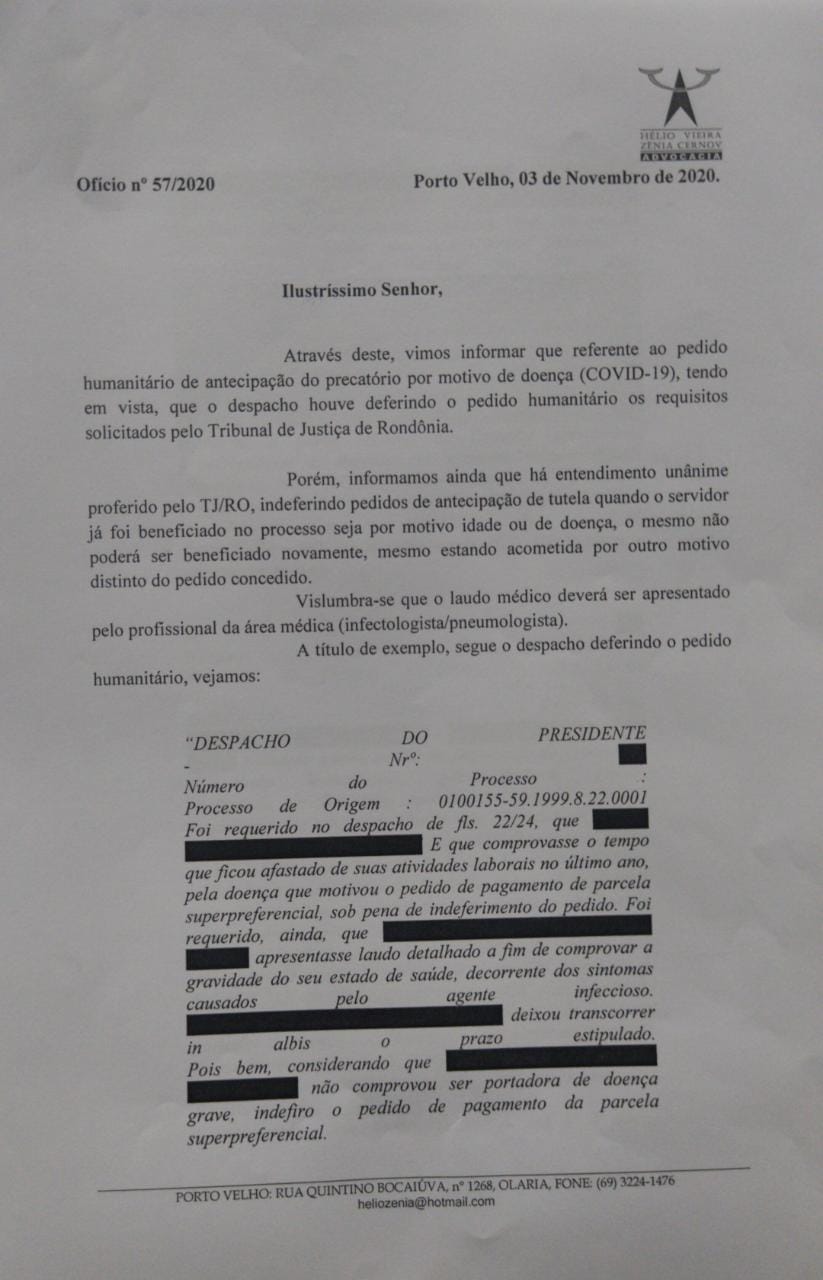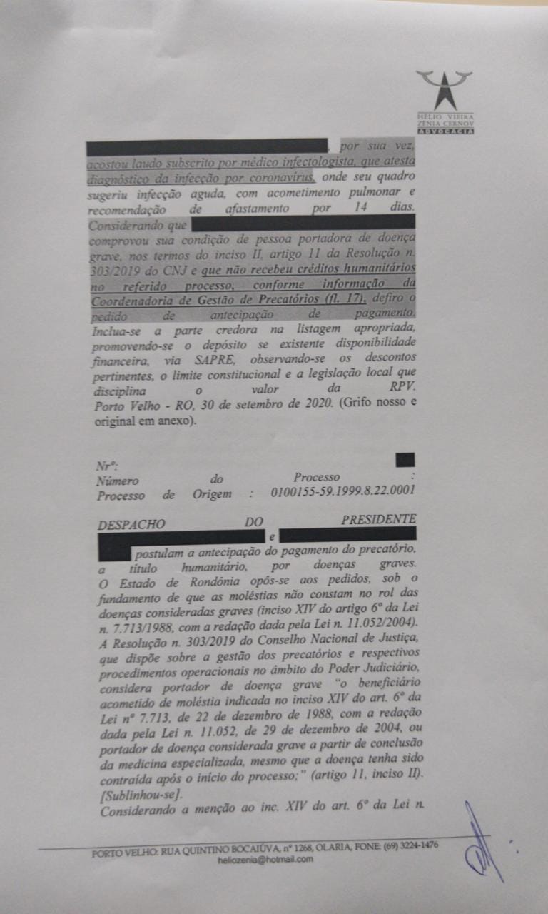 A diretoria do SINPOL-RO apresenta para todos os filiados a resposta do Escritório Advocatício Dr. Hélio Vieira & Zenia Cernov sobre a possibilidade de Antecipação de Crédito Humanitários, por motivo de doença, em razão da positivação para o COVID 19, no precatório da Isonomia, autos de nº 0007041.78.2013.822.0000
