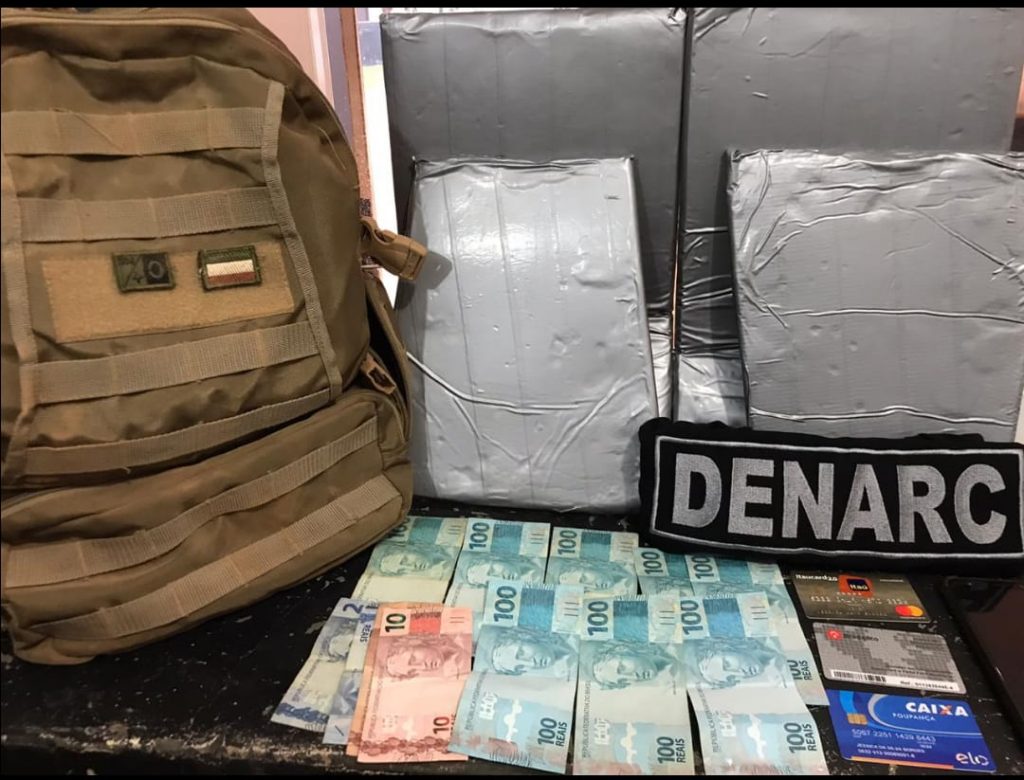 Na revista aos passageiros, a mulher foi encontrada com 4.750 Kg de cocaína em tabletes e a quantia de quase um R$ 1 mil. Ela também usava um documento (RG) brasileiro falso e um verdadeiro da Bolívia.