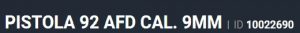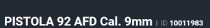 Especificação Armas de Fogo Tipo Funcionamento Arma SEMI-AUTOMATICA Quantidade Raias Arma 6 Sentido Raia Arma DIREITA Tipo Alma da Arma RAIADA Calibre da Arma 9mm Tipo Acabamento Arma TENOX Quantidade Canos Arma 1 Tamanho do Cano Arma 125mm Número de Tiros Arma 17 Espécie da Arma PISTOLA Marca da Arma TAURUS Armas de Fogo Taurus Tipo de Ação SA/DA - DUPLA AÇÃO Tipo de Carregador BIFILAR Tipo de Mira MP - MIRA PADRÃO Sistema de Segurança TRAVA MANUAL EXTERNA Quantidade de Carregadores 3 Altura (mm) 148 Altura (pol) 5,8 Largura (mm) 41 Largura (pol) 1,6 Comprimento Cano (pol) 4,9 Comprimento Total (mm) 221 Comprimento Total (pol) 8,7 Peso Arma (g) 877 Peso Arma (Kg) 0,877 Registrado no EB ReTEx nº 1536/96-S2 Modelo PT-92 AF-D Nome Comercial PISTOLA 92AFD _________________________________________________________________________________________