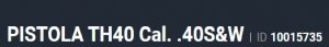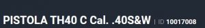 Especificação Armas de Fogo Tipo Funcionamento Arma SEMI-AUTOMATICA Quantidade Raias Arma 6 Sentido Raia Arma DIREITA Tipo Alma da Arma RAIADA Calibre da Arma 40 S&W Tipo Acabamento Arma TENOX Quantidade Canos Arma 1 Tamanho do Cano Arma 91mm Número de Tiros Arma 11 Espécie da Arma PISTOLA Marca da Arma TAURUS Armas de Fogo Taurus Tipo de Ação SA/DA - DUPLA AÇÃO Tipo de Carregador BIFILAR Tipo de Mira NT - MIRA NOVAK 3 PONTOS – TRI Sistema de Segurança DESARMADOR DO CÃO Quantidade de Carregadores 1X15 - 2X11 Altura (mm) 127,2 Altura (pol) 5 Largura (mm) 32 Largura (pol) 1,2 Comprimento Cano (pol) 3,6 Comprimento Total (mm) 174 Comprimento Total (pol) 6,9 Peso Arma (g) 691 Peso Arma (Kg) 0,691 Registrado no EB ReTEx nº 3229/18 Modelo TH40C Nome Comercial PISTOLA TH40 C _________________________________________________________________________________________