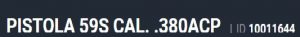 Especificação Armas de Fogo Tipo Funcionamento Arma SEMI-AUTOMATICA Quantidade Raias Arma 6 Sentido Raia Arma DIREITA Tipo Alma da Arma RAIADA Calibre da Arma .380 ACP Tipo Acabamento Arma INOX FOSCO Quantidade Canos Arma 1 Tamanho do Cano Arma 130mm Número de Tiros Arma 19 Espécie da Arma PISTOLA Marca da Arma TAURUS Armas de Fogo Taurus Localização FLORIDA Registrado no EB ReTEx nº 1268/87 1431/92-S2 Modelo PT59I Nome Comercial PISTOLA 59S _________________________________________________________________________________________