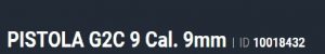 Especificação Armas de Fogo Tipo Funcionamento Arma SEMI-AUTOMATICA Quantidade Raias Arma 6 Sentido Raia Arma DIREITA Tipo Alma da Arma RAIADA Calibre da Arma 9mm Tipo Acabamento Arma CARBONO FOSCO Quantidade Canos Arma 1 Tamanho do Cano Arma 83mm Número de Tiros Arma 12 Espécie da Arma PISTOLA Marca da Arma TAURUS Armas de Fogo Taurus Tipo de Ação SA/DA - DUPLA AÇÃO Tipo de Carregador BIFILAR Tipo de Mira MR - MIRA REGULÁVEL Sistema de Segurança TRAVA MANUAL EXTERNA Quantidade de Carregadores 3 Altura (mm) 129 Altura (pol) 5,1 Largura (mm) 30 Largura (pol) 1,2 Comprimento Cano (pol) 3,3 Comprimento Total (mm) 160 Comprimento Total (pol) 6,3 Peso Arma (g) 611 Peso Arma (Kg) 0,611 Registrado no EB ReTEx nº 3188/17 Modelo PT111 G2 A Nome Comercial PISTOLA G2C 9 _________________________________________________________________________________________