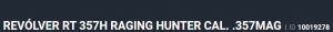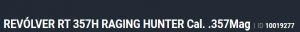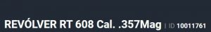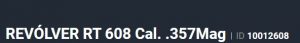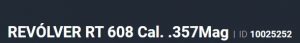 Especificação Armas de Fogo Tipo Funcionamento Arma REPETICAO Quantidade Raias Arma 6 Sentido Raia Arma DIREITA Tipo Alma da Arma RAIADA Calibre da Arma 357 Mag Tipo Acabamento Arma INOX FOSCO Quantidade Canos Arma 1 Tamanho do Cano Arma 212mm Número de Tiros Arma 7 Espécie da Arma REVOLVER Marca da Arma TAURUS Armas de Fogo Taurus Tipo de Ação SA/DA - DUPLA AÇÃO Tipo de Mira PC - MIRA PADRÃO COM COMPENSAD Sistema de Segurança BARRA DE PERCUSSÃO Altura (mm) 162 Altura (pol) 6,4 Largura (mm) 45,7 Largura (pol) 1,8 Comprimento Cano (pol) 8,346 Comprimento Total (mm) 360 Comprimento Total (pol) 14,17 Peso Arma (g) 1650 Peso Arma (Kg) 1,650 Registrado no EB ReTEx nº 3358/19 Modelo RT357H212I Nome Comercial 357H TAURUS - NUMERAÇÃO DE SÉRIE Revólveres Outras Armações 6 tiros, Compacta, 446, Casull _________________________________________________________________________________________