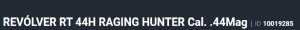 O REVÓLVER TAURUS RT44H possui capacidade de 6 tiros no calibre .44 Mag, sistema de cano de 8 3/8" exclusivo construído em aço e inserido em uma capa de alumínio com trilho Picatinny integrado, vértice de mira ajustável e compensador de recuo.Foi especialmente desenvolvido para o mercado de caça e lazer. O RT44H foi vencedor do PRÊMIO HANDGUN OF THE YEAR 2019.
