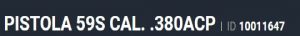 Especificação Armas de Fogo Tipo Funcionamento Arma SEMI-AUTOMATICA Quantidade Raias Arma 6 Sentido Raia Arma DIREITA Tipo Alma da Arma RAIADA Calibre da Arma .380 ACP Tipo Acabamento Arma INOX FOSCO Quantidade Canos Arma 1 Tamanho do Cano Arma 102mm Número de Tiros Arma 19 Espécie da Arma PISTOLA Marca da Arma TAURUS Armas de Fogo Taurus Localização FLORIDA _________________________________________________________________________________________