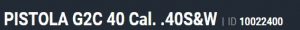 A TAURUS G2C 40 é uma pistola compacta, ergonômica, e leve. Pesando aproximadamente 600 gramas, armação em polímero de alta resistência, tamanho compacto e sistema de percussor lançado, é a arma ideal para o porte velado, sendo também uma excelente alternativa para uso como arma e back up. Sucesso de vendas, com mais de 2 milhões de unidades vendidas, sendo a arma mais vendida na sua categoria atualmente.