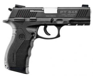A TAURUS 845 possui armação em polímero de alta resistência, mecanismo de disparo em ação simples e dupla, cão externo, trava manual e desarmador do cão ambidestros.