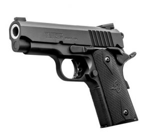 A TAURUS 1911 OFFICER é a versão compacta da clássica pistola 1911, Possui armação em aço forjado, mecanismo de disparo em ação simples, cão externo, trava manual e de empunhadura.