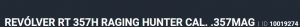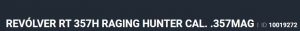 Detalhe do ProdutoO REVÓLVER TAURUS RT357H possui capacidade de 7 tiros no calibre .357 Mag, sistema de cano de 8 3/8" exclusivo construído em aço e inserido em uma capa de alumínio com trilho Picatinny integrado, vértice de mira ajustável e compensador de recuo.Foi especialmente desenvolvido para o mercado de caça e lazer.