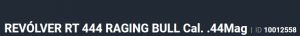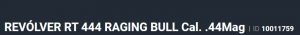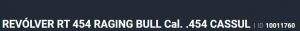 Especificação Armas de Fogo Tipo Funcionamento Arma REPETICAO Quantidade Raias Arma 6 Sentido Raia Arma DIREITA Tipo Alma da Arma RAIADA Calibre da Arma 454 Casull Tipo Acabamento Arma INOX FOSCO Quantidade Canos Arma 1 Tamanho do Cano Arma 212mm Número de Tiros Arma 5 Espécie da Arma REVOLVER Marca da Arma TAURUS Armas de Fogo Taurus Descrição Código USA M454 RAGING BULL .454CAS SS Complemento Cód. USA 8-3/8" 5-RDS Tipo de Ação SA/DA - DUPLA AÇÃO Tipo de Mira PC - MIRA PADRÃO COM COMPENSAD Sistema de Segurança PARAFUSO TRAVA Altura (mm) 161 Altura (pol) 6,33 Largura (mm) 45 Largura (pol) 1,77 Comprimento Cano (pol) 8,36 Comprimento Total (mm) 358 Comprimento Total (pol) 14,08 Peso Arma (g) 1780 Peso Arma (Kg) 1,780 Registrado no EB ReTEx nº 1702/00 Modelo 454212 - PEISLI/CP Nome Comercial REVOLVER RT454 TAURUS - NUMERAÇÃO DE SÉRIE Revólveres Outras Armações 6 tiros, Compacta, 446, Casull _________________________________________________________________________________________