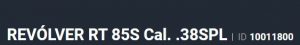 Especificação Tipo Funcionamento Arma REPETICAO Quantidade Raias Arma 6 Sentido Raia Arma DIREITA Tipo Alma da Arma RAIADA Calibre da Arma .38 SPL Tipo Acabamento Arma CARBONO ALTO BRILHO Quantidade Canos Arma 1 Tamanho do Cano Arma 51mm Número de Tiros Arma 5 Espécie da Arma REVOLVER Marca da Arma TAURUS Armas de Fogo Taurus Tipo de Ação SA/DA - DUPLA AÇÃO Tipo de Mira MP - MIRA PADRÃO Sistema de Segurança BARRA DE PERCUSSÃO Altura (mm) 125 Altura (pol) 4,91 Largura (mm) 34 Largura (pol) 1,35 Comprimento Cano (pol) 2,06 Comprimento Total (mm) 175 Comprimento Total (pol) 6,88 Peso Arma (g) 650 Peso Arma (Kg) 0,650 Registrado no EB ReTEx nº TERMO DE APROVACAO 15/83-CTEX Modelo 38551-POS Nome Comercial REVOLVER RT85S TAURUS - NUMERAÇÃO DE SÉRIE Revólveres 5Tiros Armação 5 tiros _________________________________________________________________________________________