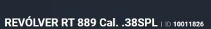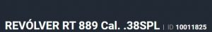 Especificação Armas de Fogo Tipo Funcionamento Arma REPETICAO Quantidade Raias Arma 6 Sentido Raia Arma DIREITA Tipo Alma da Arma RAIADA Calibre da Arma .38 SPL Tipo Acabamento Arma INOX ALTO BRILHO Quantidade Canos Arma 1 Tamanho do Cano Arma 101mm Número de Tiros Arma 6 Espécie da Arma REVOLVER Marca da Arma TAURUS Armas de Fogo Taurus Tipo de Ação SA/DA - DUPLA AÇÃO Tipo de Mira MI - MIRA COM INSERTO Sistema de Segurança BARRA DE PERCUSSÃO Altura (mm) 158 Altura (pol) 6,23 Largura (mm) 38 Largura (pol) 1,49 Comprimento Cano (pol) 4,05 Comprimento Total (mm) 245 Comprimento Total (pol) 9,64 Peso Arma (g) 1055 Peso Arma (Kg) 1,055 Registrado no EB ReTEx nº 1291/88 - S1 Modelo 38101-PEISLI Nome Comercial REVOLVER RT889 TAURUS - NUMERAÇÃO DE SÉRIE Revólveres Outras Armações 6 tiros, Compacta, 446, Casull _________________________________________________________________________________________
