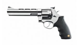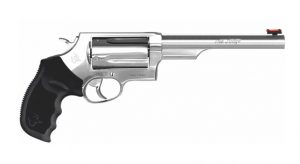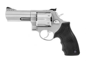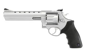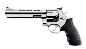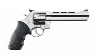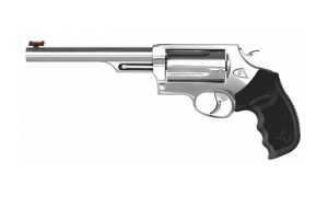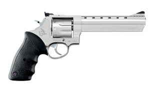 O REVÓLVER TAURUS 444 possui capacidade de 6 tiros, calibre .44 Magnum, cano de 6,5", vértice de mira totalmente regulável, compensador de recuo integrado ao cano e possui duplo sistema de trancamento do tambor. Resistente e preciso, este modelo é indicado para caça e lazer aliando desempenho de ponta e alto poder de fogo.