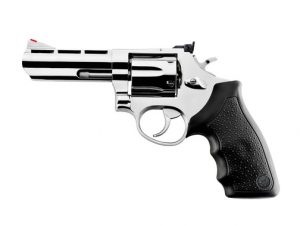 O REVÓLVER TAURUS 044 possui capacidade de 6 tiros, calibre .44 Magnum, cano de 4", vértice de mira ajustável e compensador de recuo. Resistente e preciso, este modelo é indicado para caça e lazer aliando desempenho de ponta e alto poder de fogo.