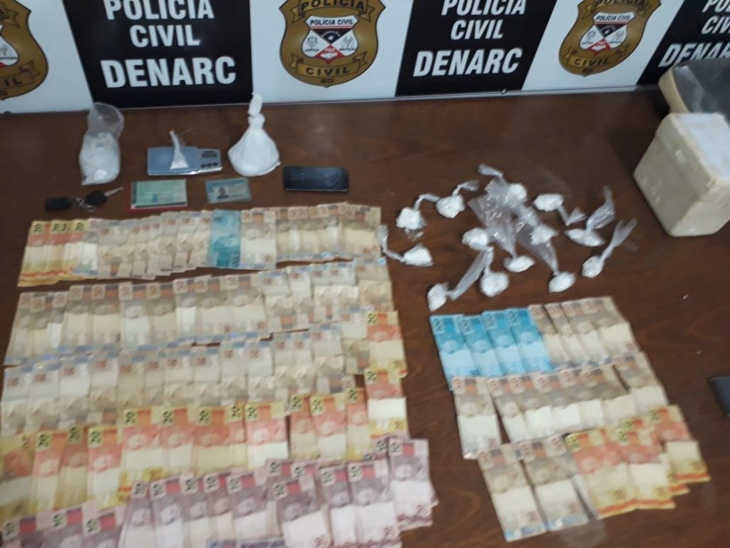 O foragido da Justiça identificado como Luiz Ribeiro de Souza, foi preso nesta sexta-feira (04) por tráfico de drogas na zona Sul de Porto Velho (RO). Antes de ser capturado, ele ainda fugiu em um automóvel, perdeu o controle da direção e bateu no muro de uma casa. Segundo relatos feitos pelos policiais, para evitar a evitar a prisão, o traficante ainda roubou uma bicicleta para fugir, mas sem sucesso. Na casa dele, localizada na Rua 08 de Julho, bairro Castanheira, zona Sul de Porto Velho, os policiais apreenderam grande quantidade de dinheiro e materiais usados no tráfico. Ainda de acordo com as informações apresentadas pela polícia, na casa do comparsa de Luiz, na Rua Miguel Calmon, foram apreendidas diversas porções de cocaína, mas o suspeito de prenome Renan não foi encontrado. Aos policiais, Luiz Ribeiro disse que estava foragido do Estado do Paraná por crime de roubo. Diante dos fatos, ele foi apresentado na sede do Denarc. Luiz estava com CNH falsa, fato comprovado pela equipe que atuou no caso.