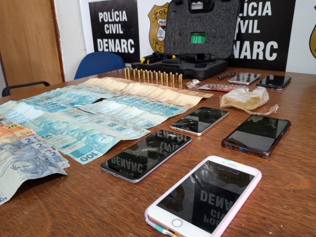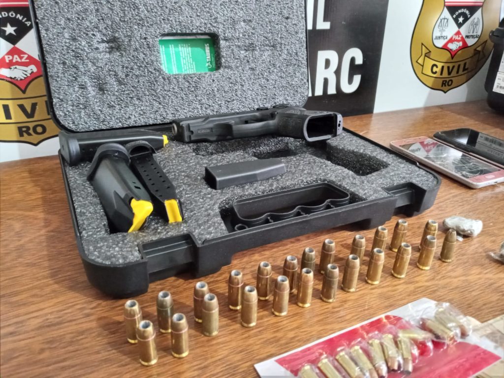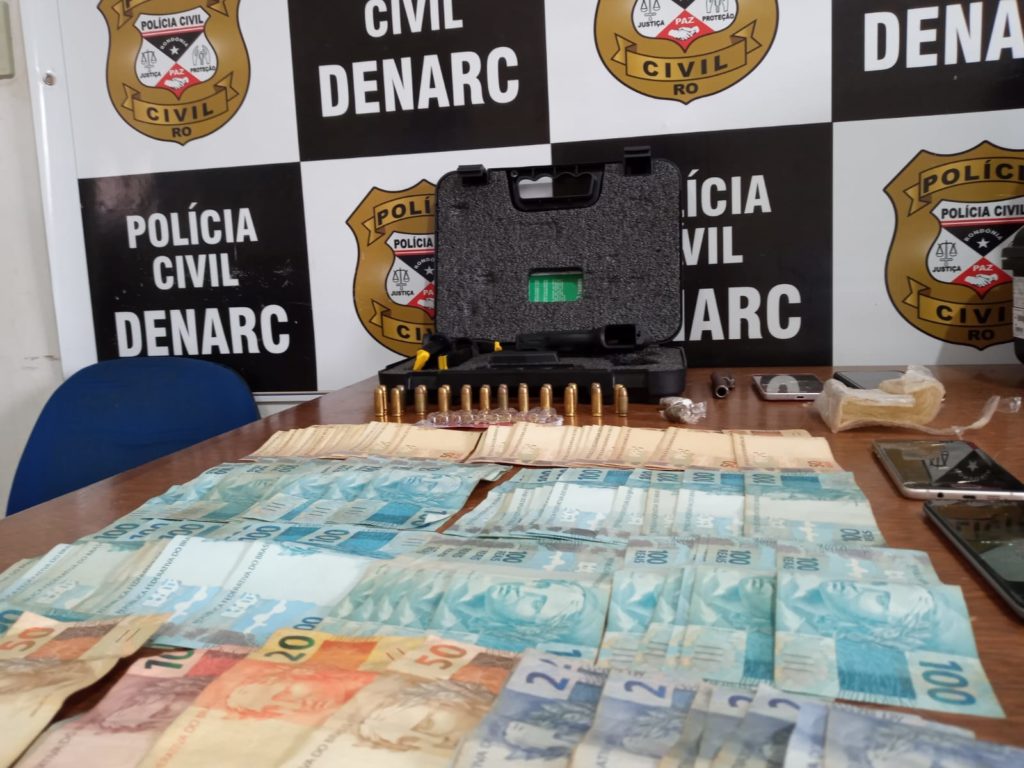 Uma operação conjunta realizada pelo Departamento de Narcóticos (Denarc) e a 1ª Delegacia de Polícia de Porto Velho, prendeu no início da tarde desta terça-feira (26), na Rua da Paz, no bairro Areal da Floresta, Zona Sul de Porto Velho, Jobson Rauan, 30 anos, e Danilo Jardel, 21 anos, sob acusação de tráfico de drogas. De acordo o relato policial, após investigação em conjunto das delegacias, foram identificados Jobson Rauan, morador da Rua do Sol, bairro Areal da Floresta, com ele foi encontrada uma pistola calibre 9mm, que tudo indica ser do acervo de uma transportadora furtada há pouco tempo. No local, também foi encontrado munições de calibres 32 e ponto40, e uma porção pequena de maconha. Segundo os agentes, na Rua da Paz, também no bairro Areal da Floresta, foi detido o investigado Danilo Jardel, com grande quantidade em dinheiro, um pacote grande com resquícios de maconha. Ele estava com tornozeleira eletrônica. Os investigados foram entregue a autoridade policial para as medidas cabíveis. Jobson Rauan foi autuado em flagrante por posse de arma e receptação. Danilo Jardel foi deferido fiança por posse de entorpecente.