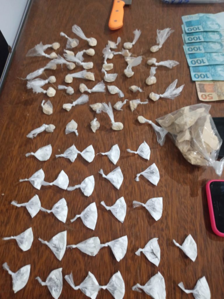 Policiais civis lotados no Departamento de Narcóticos realizaram na noite desta sexta-feira (08) mais uma ação para combater o tráfico de drogas. Eles prenderam Rodrigo B. 23 anos, conhecido como "Gordo". Ele estaria em uma boca de disfarçada de bar na linha 27, altura do km 12, ramal Taboca, na zona rural de Porto Velho. De acordo com o boletim de ocorrência, o suspeito vinha sendo monitorado por investigadores. Eles levantaram informações de que “Gordo” estava chefiando uma boca de fumo no bar que era usado de fachada para o tráfico. De posse das informações, os policiais fizeram a abordagem e prenderam o acusado com cerca de 70 porções de cocaína, uma pistola calibre 9 milímetros e munições, além de dinheiro em espécie, cédulas de baixo valor. Ainda segundo o relato policial, no bairro Cidade Nova, na Zona Sul de Porto Velho, os policiais cumpriram mandado de busca e apreenderam mais porções de drogas. O pai de Rodrigo, apontado como sendo o dono da casa, não foi localizado na residência. No local o Denarc encontrou 125 gramas de cocaína e R$ 950, além de vários sacos plásticos, utilizados para embalar a droga. Rodrigo tem 23 anos. Essa é a primeira vez que é preso, seu pai, segundo o próprio acusado, já foi preso em Araçatuba São Paulo, por tráfico de drogas. Com essa prisão o Departamento de Narcóticos da uma resposta à população rural que há tempos vinha pedindo essa providência. A operação teve o apoio do Núcleo de Operações com Cães (NOC).