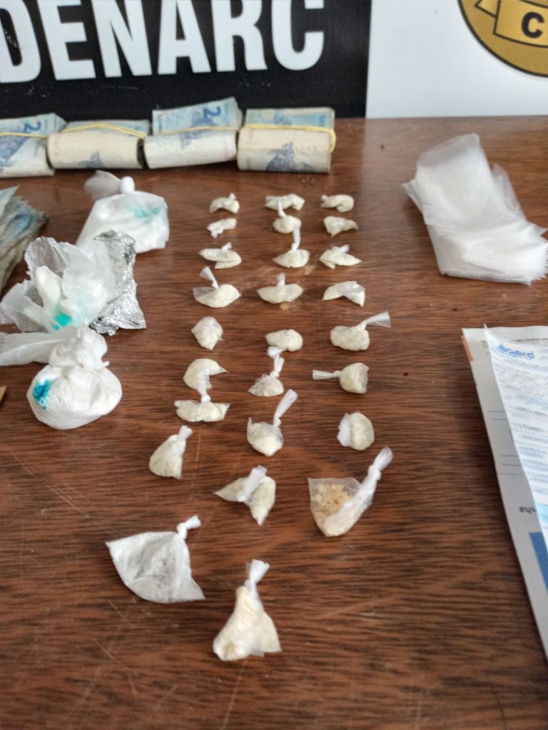 Durante operação realizada nesta sexta-feira (08) em bares localizados no entorno da rodoviária de Porto Velho, policiais civis lotados no Departamento de Narcóticos (Denarc) prenderam uma mulher e um homem que estavam vendendo droga em um bar. A mulher foi identificada como Laiane e apontada como a dona do bar. O Denarc também cumpriu mandado de busca em sua residência onde foi encontrado mais droga tipo cocaína. Samuel, um morador de rua estava vendendo droga no bar a mando de Laiane, também foi preso. Os policiais apreenderam ainda um automóvel que pertenceria a Laiane.