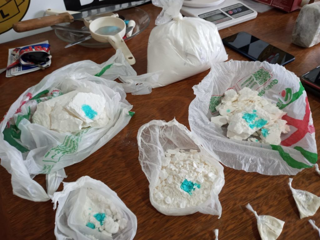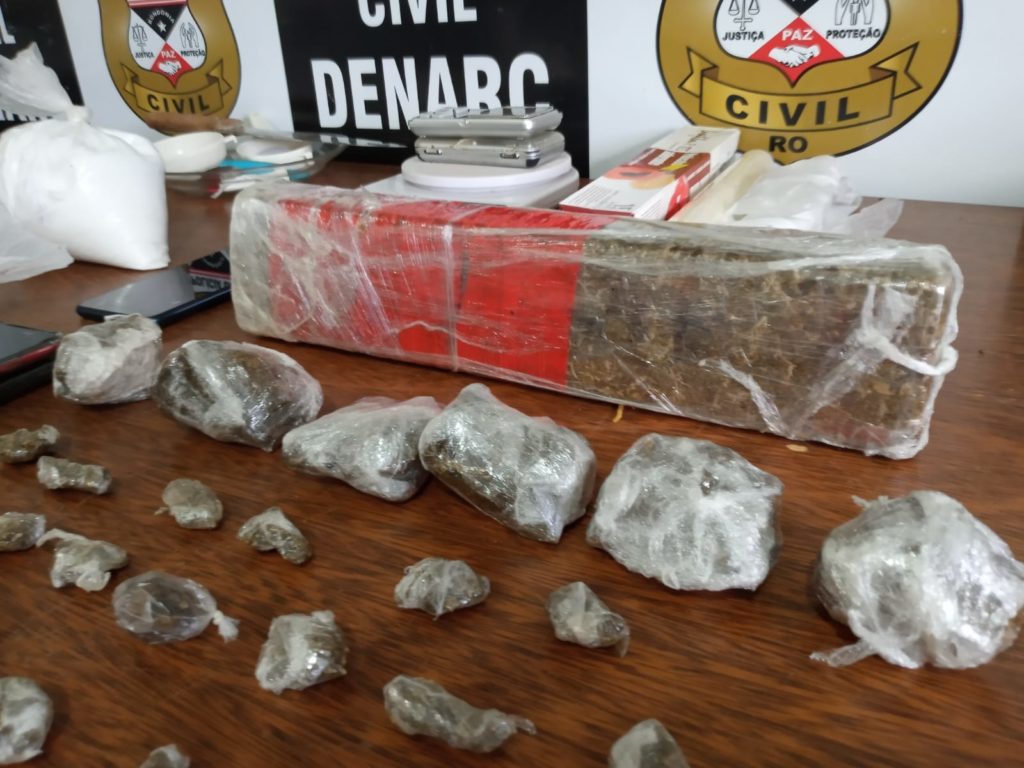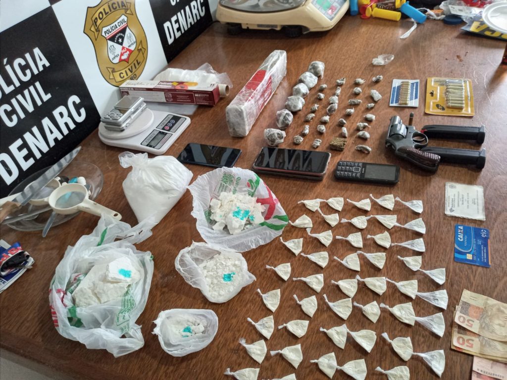 Policiais civis lotados no Departamento de Narcóticos (Denarc) prenderam no início da tarde desta sexta-feira (26), Vitor Lopes, 24 anos, Marlon Pontes, 22 anos, e um adolescente de 16 anos. Eles são acusados de tráfico de drogas. Eles portavam uma arma de fogo e munições. A prisão ocorreu à Rua Maracujá, Zona Leste da capital. Segundo a polícia, a casa era monitorada por câmeras de segurança devido às suspeitas que existiam contra os suspeitos. Ao todo foram apreendido aproximadamente mais de 2kg de drogas entre maconha e cocaína. De acordo com a polícia, local tinha movimentação constante de pessoas que estavam sob monitoração. Os policiais fizeram a abordagem no momento em que um usuário de droga saia da casa. Os agentes deram flagrante em Vitor, Marlon e o adolescente, que estava fazendo a embalagem da droga. Segundo os policiais do Denarc, foram encontradas na casa duas televisões. Os aparelhos eram usados como vídeo monitor na parte da frente da casa. Além das câmeras, segundo a polícia, a boca era vigiada por dois cães Pitbull. Os acusados faziam entregas a domicílio e usavam chaves PIX para vender a droga. Eles foram levados para a sede do Denarc e estão à disposição da Justiça. Eles serão ouvidos em audiência de custódia.