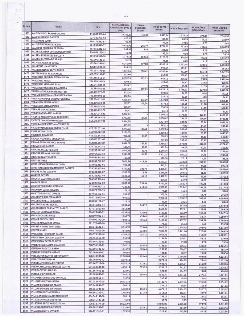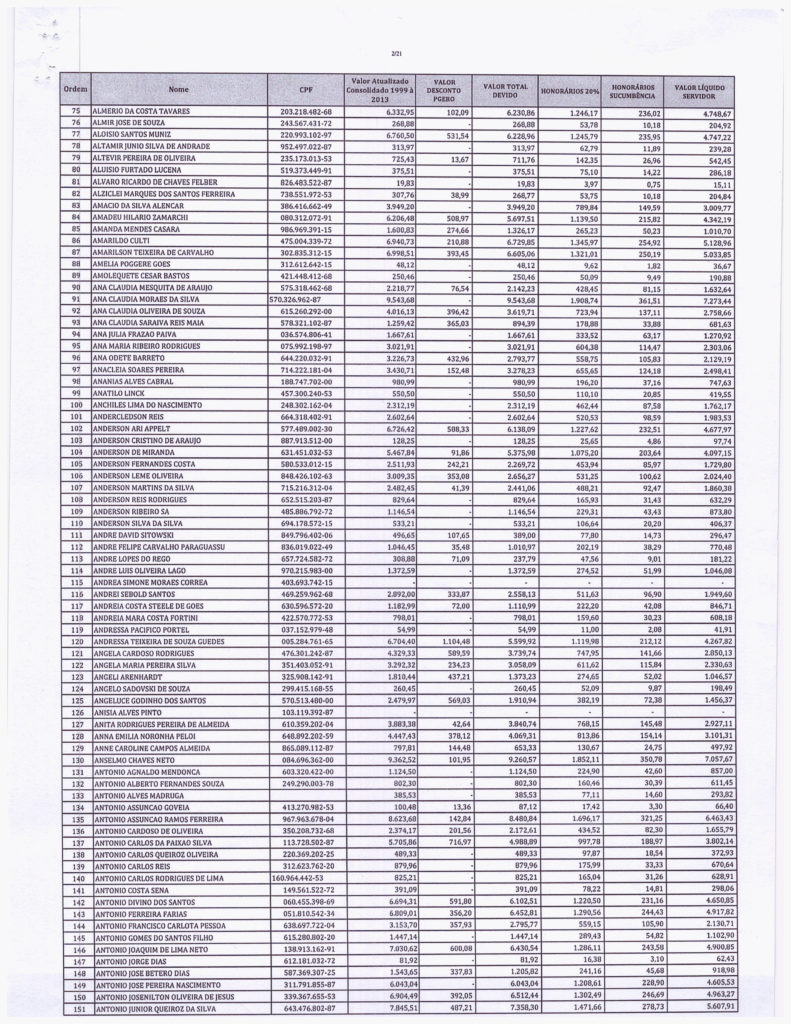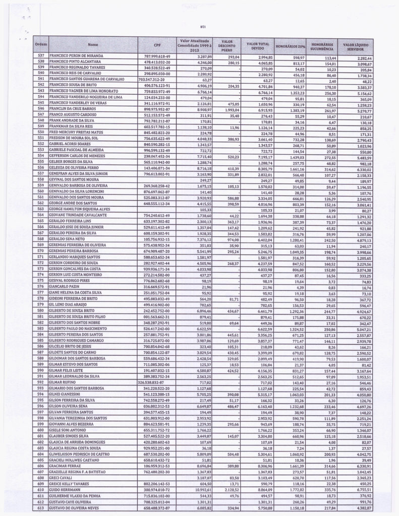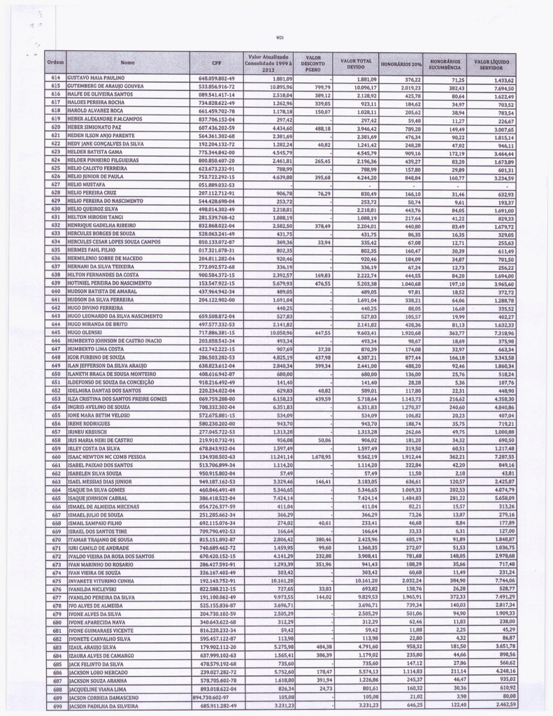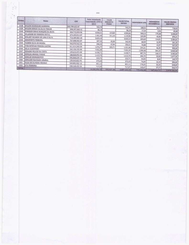Segue abaixo, o demonstrativo consolidado de valores atualizados pela PGE. VALORES - PRECATÓRIOS