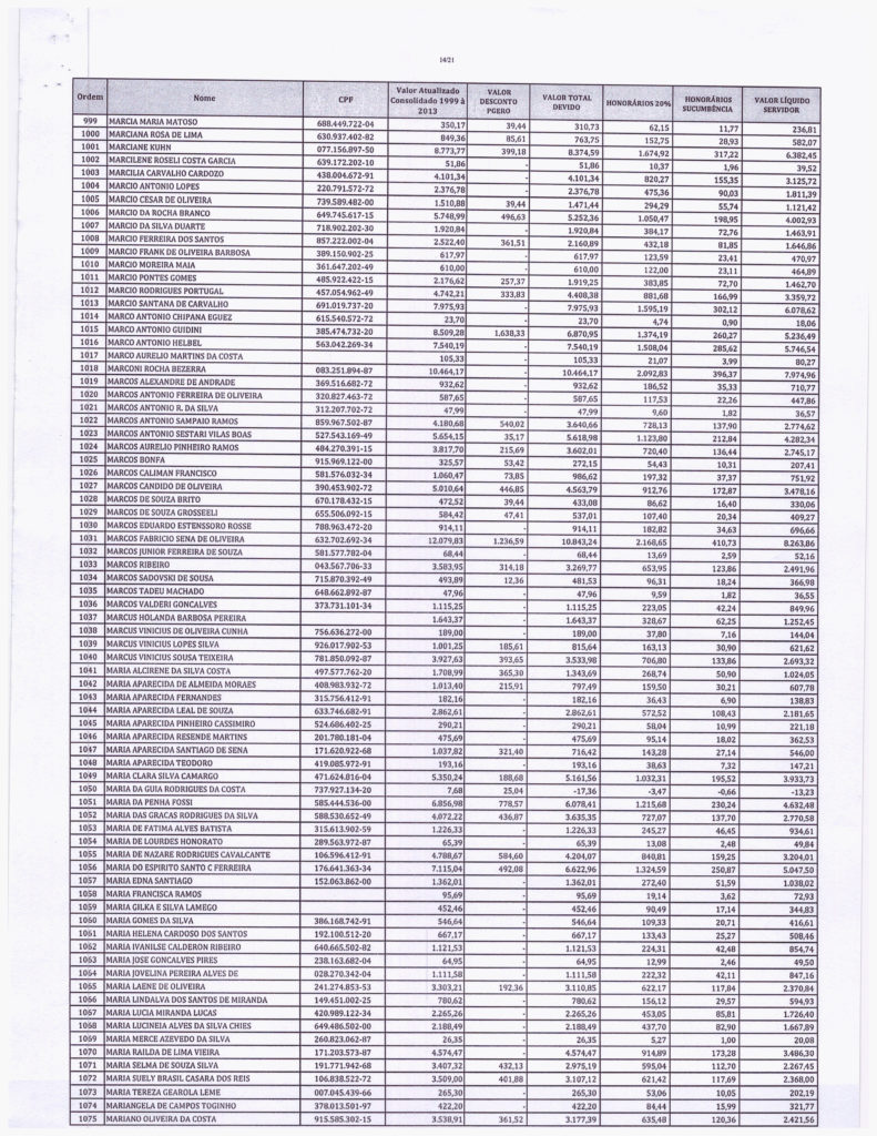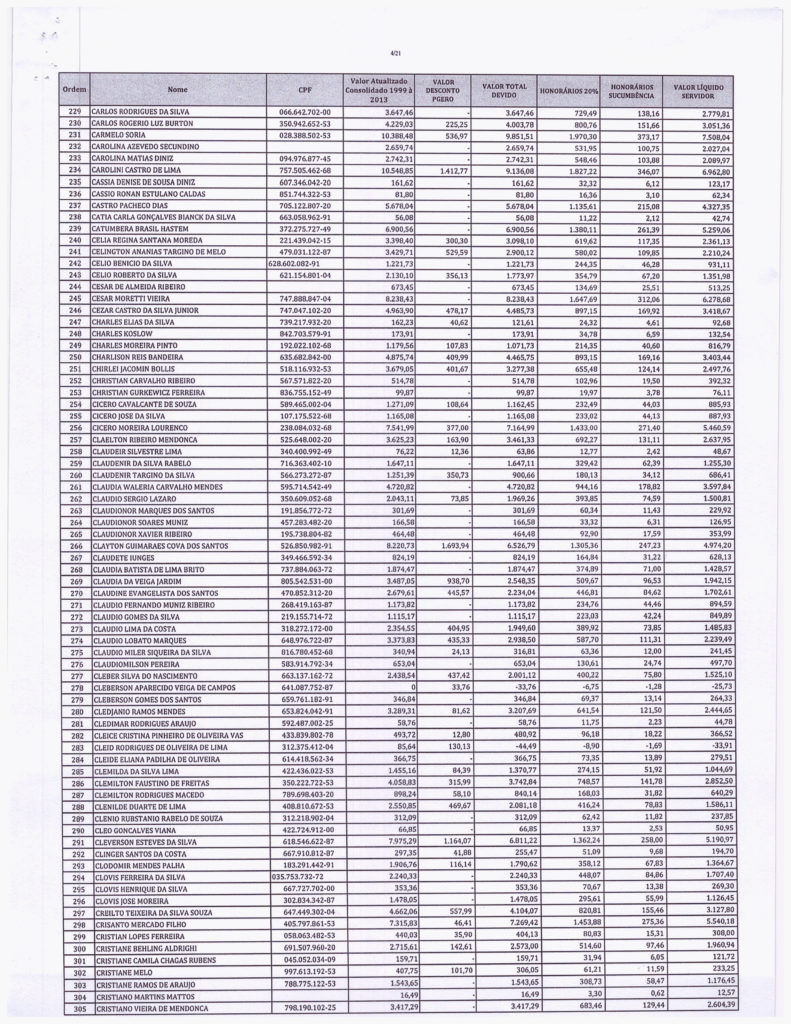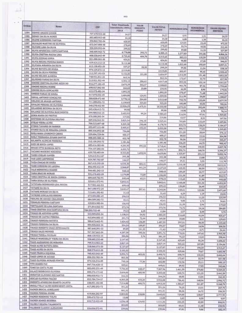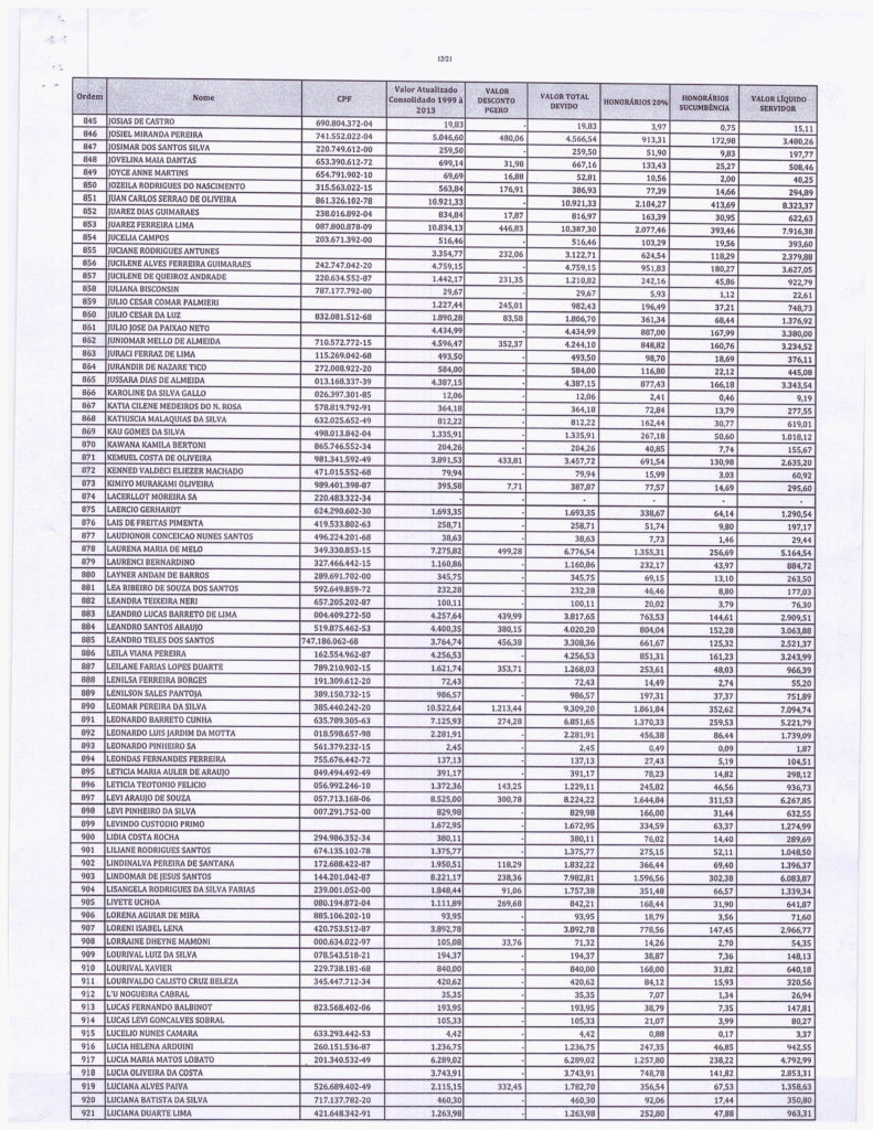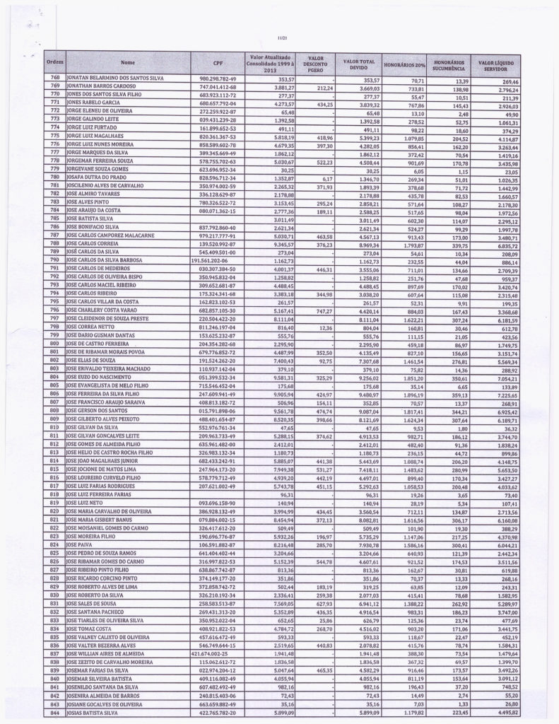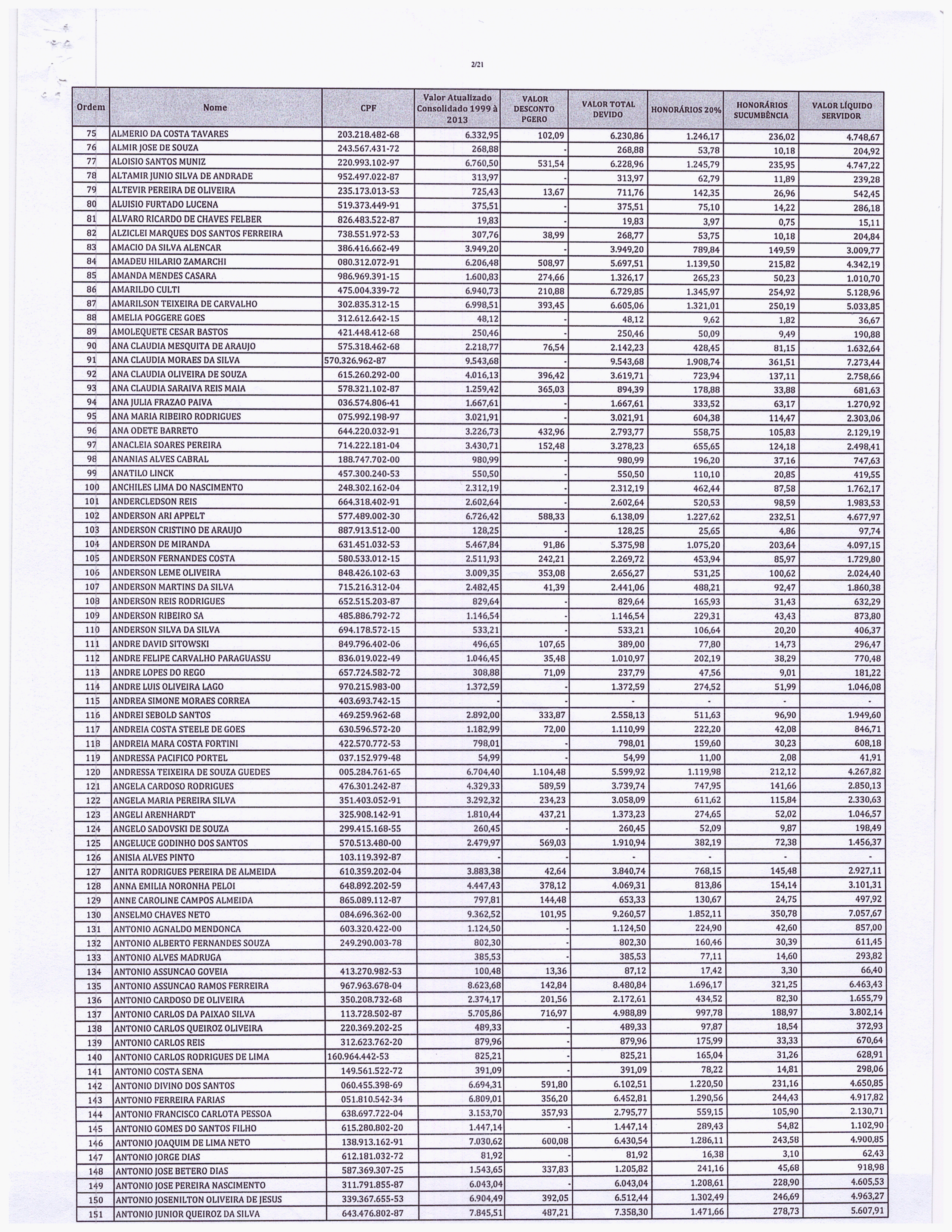Segue abaixo, o demonstrativo consolidado de valores atualizados pela PGE. VALORES - PRECATÓRIOS