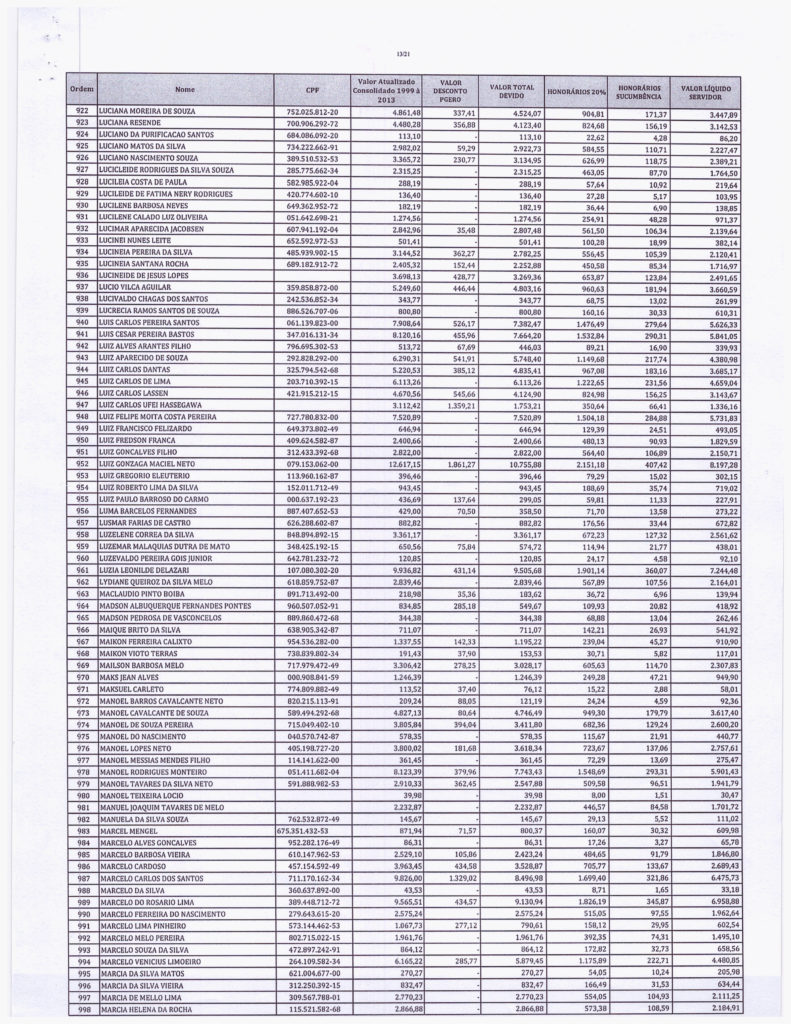 Informamos ainda, que oportunamente, após o encerramento do recesso do Poder Judiciário, será solicitado os dados bancários dos substituídos, para realizar o pagamento em Requisição de Pequeno Valor (RPV), bem como, a inscrição em Precatório, aos que fazem jus ao direito.
