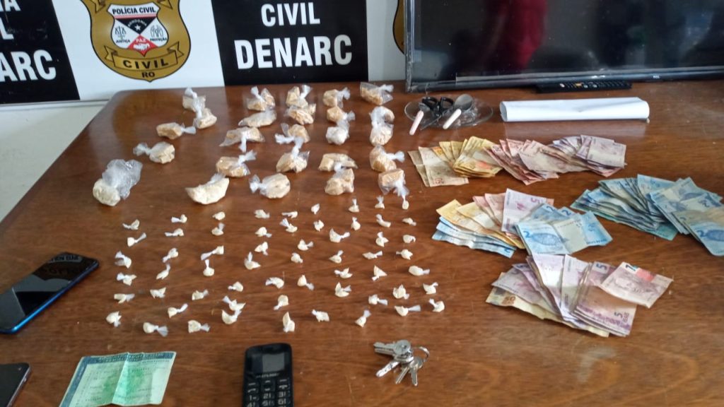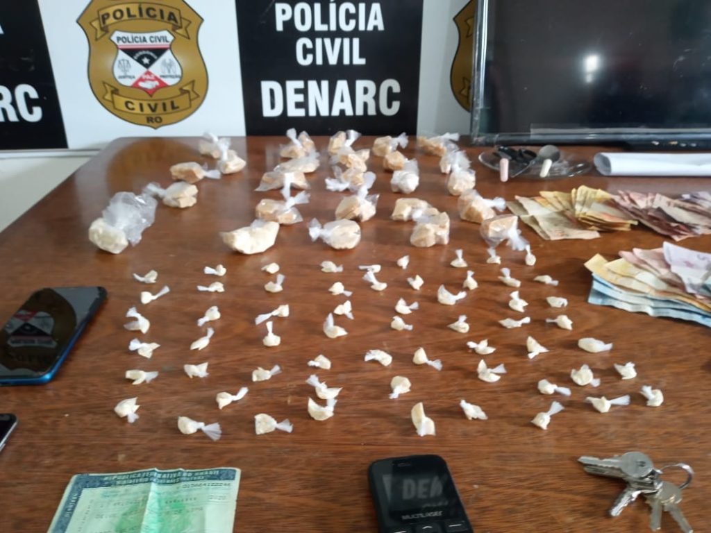 Policiais civis lotados no Departamento de Narcóticos (Denarc) prenderam, nesta sexta-feira (14), na Zona Leste, em Porto Velho, Mauro S. C., Breno C. S., e Gabriel S. Eles são acusados de tráfico de drogas. De acordo com o Boletim de Ocorrência, ação da Polícia Civil aconteceu em dois endereços distintos. Segundo relatos dos policiais, a equipe do Denarc já havia prendido a esposa e um enteado de Mauro. O homem é apontado pela polícia como o chefe da boca de fumo. No mês de março deste ano, o acusado Mauro tinha conseguido fugir da ação dos policiais, na ocasião a esposa e um enteado dele foram presos. Já nesta sexta-feira, Mauro foi encontrado em um apartamento na Avenida Sete de Setembro, bairro Cuniã. Breno, que também é enteado de Mauro e Gabriel, genro dele, foram presos na boca de fumo da família localizada na Rua Rita Ibanês, bairro Teixeirão, na Zona Leste de Porto Velho. Durante a ação dos policiais nesta sexta-feira foi apreendido aproximadamente meio quilo de cocaína.