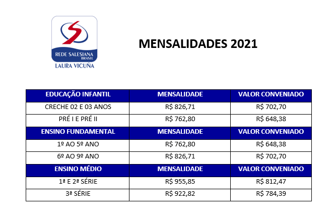 A conveniada oferecerá aos beneficiários, dependentes legais e colaboradores o desconto no percentual de 15% sobre o valor da mensalidade das turmas da creche à 3ª série do ensino médio.