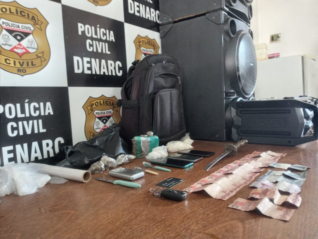 Policiais civis lotados no Departamento de Narcóticos (Denarc) fizeram uma verdadeira limpeza em um local conhecido como “Beco da Maconha”, durante mais uma operação de combate ao tráfico de drogas. De acordo com relatos policiais, o local vem sofrendo operações constantes do Denarc, pois a população pede socorro, relatando o grande fluxo de usuários de drogas na área. Há poucos dias, nessa mesma região, o Denarc prendeu duas mulheres que tocavam o tráfico na localidade as mesmas foram presas com cocaína e maconha. Após a prisão das mulheres, Felipe, de 24 anos, junto com seus comparsas, começou a tocar a boca de fumo na localidade, com grande movimentação de usuários. Nesta quinta-feira (29), após intensa investigação foi cumprido mandado de busca no local e encontrado farta quantidade de cocaína e maconha. No local, foram encontrados usuários que haviam acabado de adquirir a droga, bem como Felipe dono da boca e seu irmão Carlos, de 18 anos, que o auxiliava na venda. No total, cerca de quilo de drogas foi apreendido. No local foram apreendidas porções de cocaína de alta qualidade O local era preparado para o trafico, destacam os policiais, pois tinha uma varanda onde os usuários esperavam para serem atendidos. O portão era fechado com PVC para facilitar a entrega aos usuários, deixando apenas brechas para passar uma mão. Esse flagrante foi feito na Rua Camboriú, bairro Aponiã. O local é conhecido como BECO DA MACONHA porque não tem saída.
