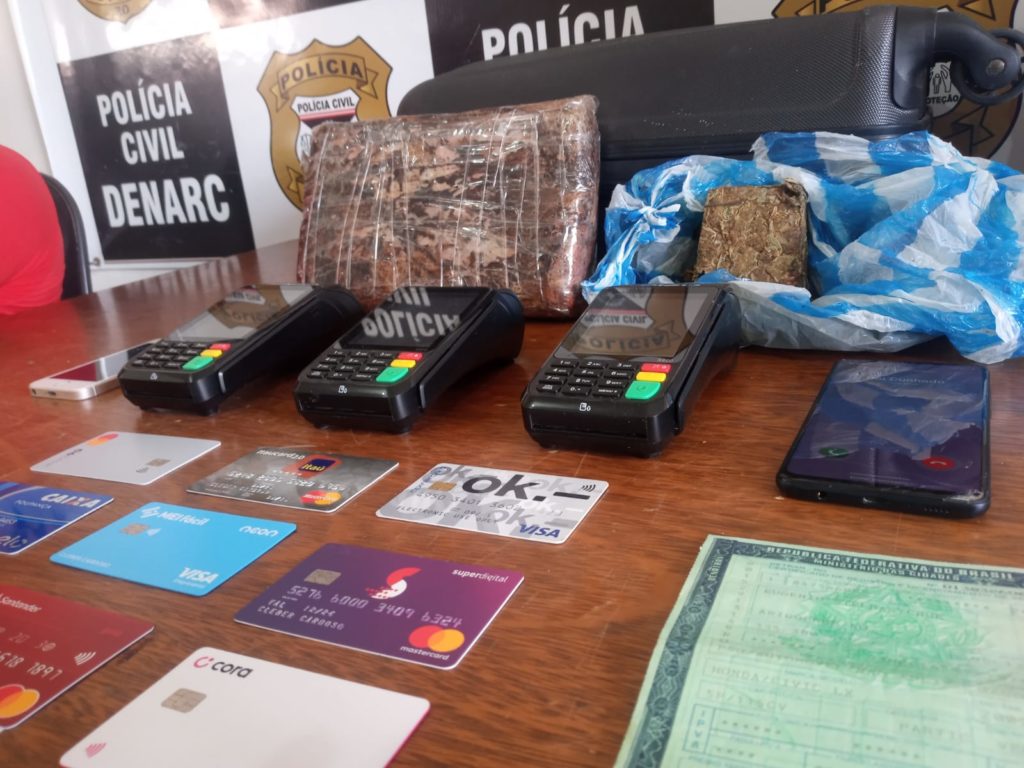 Policiais civis lotados no Departamento de Narcóticos (Denarc) prenderam nesta quarta-feira (01) um jovem de 19 anos, identificado como Ranufo. Ele é acusado de tráfico de drogas. De acordo com relato policial,Ranufo foi preso tentado pular a janela do seu quarto com uma mala de viagem e no seu interior continha quase um quilo e meio maconha tipo Skank, droga avaliada em aproximadamente R$ 10 mil reais. Os policiais vinham investigando ações suspeitas de Ranufo. Ele foi preso na Rua João Goulart, bairro Liberdade, Zona Norte de Porto. No local foi também preso Cléber Cardoso que é suspeito de ter fornecido a droga pra Ranufo. Cléber foi preso em seu carro um Honda Civic preto. Foram apreendidos, também, de vários cartões de crédito. Segundo o próprio Cléber, ele já respondeu pelo crime de trafico em Goiânia, no Estado de Goiás.