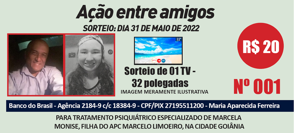 Com o apoio da diretoria do Sindicato dos Policiais Civis de Rondônia (SINPOL-RO), o policial civil Marcelo Limoeiro está realizando uma ação entre amigos para custear parte do tratamento médico de sua filha, Marcela Monise F. Limoeiro. Trata-se de uma rifa de um televisor de 32 polegadas. A rifa está sendo vendida por R$ 20 o número. Limoeiro destaca o apoio que vem recebendo da diretoria do Sinpol-RO, em especial do presidente, José Ribeiro. O sorteio acontecerá dia 31 de maio deste ano. [video width="640" height="352" mp4="/media/sinpolro/uploads/2022/04/video-rifa-sinpol-900.mp4"][/video]