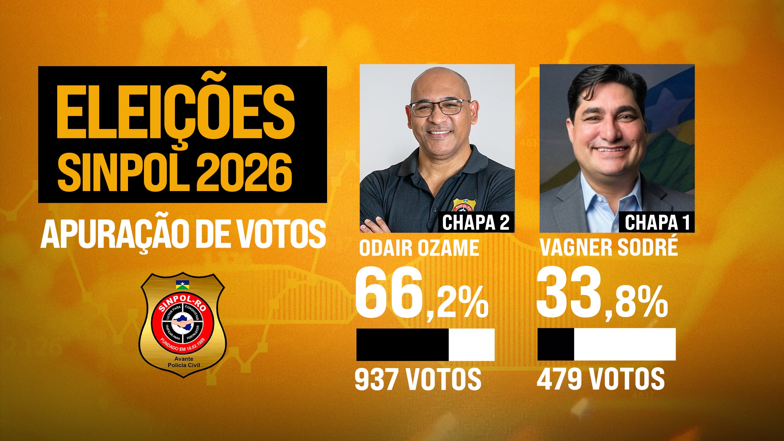 As eleições definiram a Chapa 2 como vencedora, com 937 votos, o equivalente a aproximadamente 66,2% dos votos válidos. A Chapa 1 obteve 479 votos, correspondendo a cerca de 33,8%, conforme apuração final. O processo eleitoral mobilizou servidores de Porto Velho e de diversas regiões do estado. Estiveram na disputa as chapas lideradas por Odair José Ozame, da chapa “Unidade e Força”, e Vagner Pereira Sodré, da chapa “Mudança e Transparência”.
