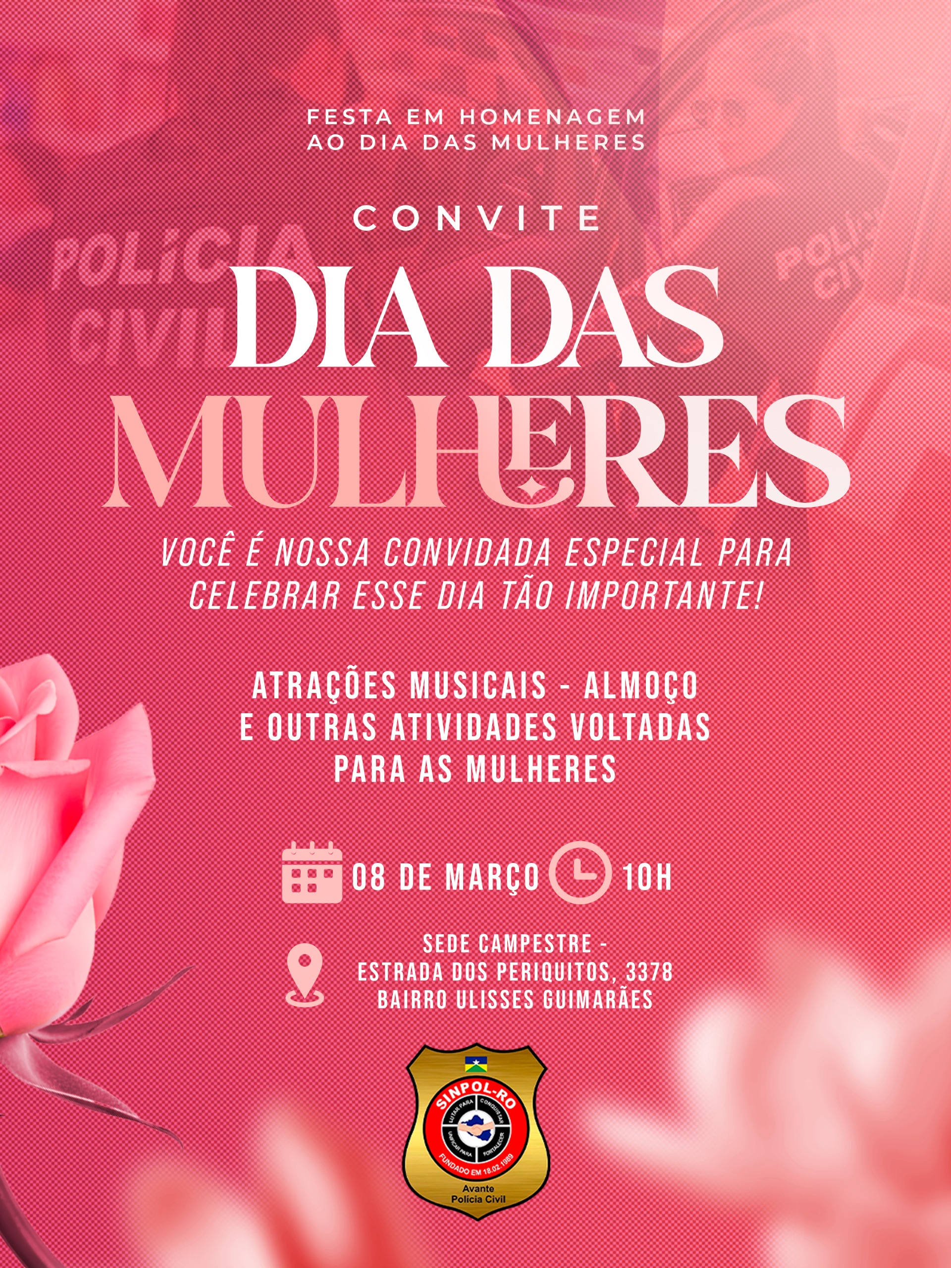 O Sinpol Rondônia promove, no próximo dia 08 de março, uma programação especial em comemoração ao Dia Internacional da Mulher, reforçando o reconhecimento e a valorização das mulheres que atuam na categoria e contribuem diariamente para o fortalecimento da segurança pública no estado.