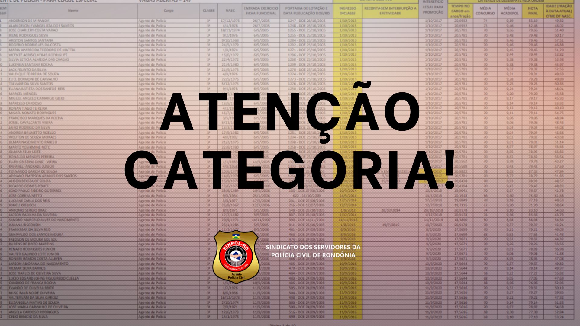 O Sindicato dos Policiais Civis do Estado de Rondônia – SINPOL informa a toda a categoria que foi oficialmente divulgada a classificação especial dos servidores para fins de promoção, decorrente da ampliação de vagas prevista na Lei nº 6.350, de 27 de março de 2026.